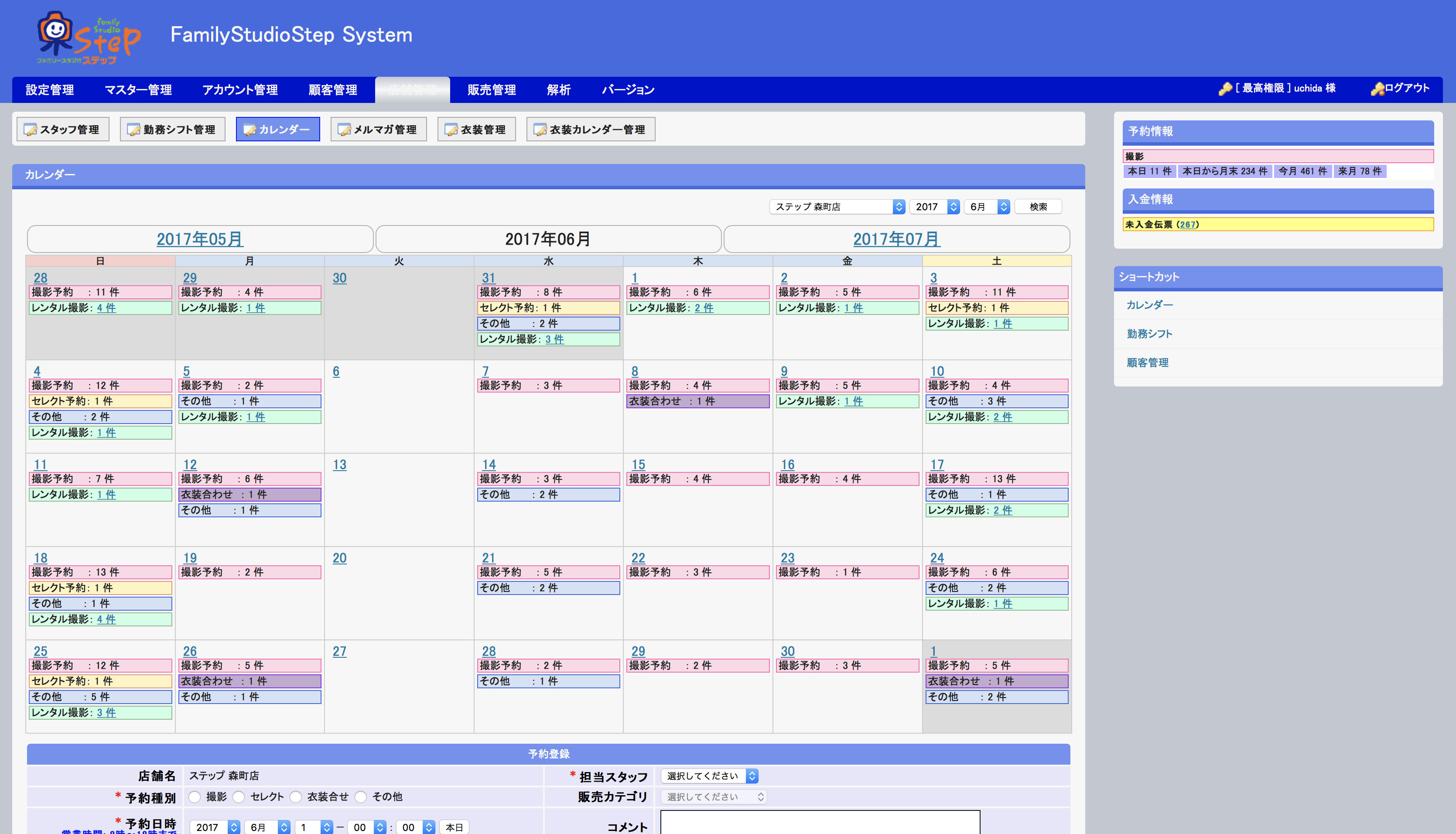 スタジオ向けの業務を一元管理するWebアプリケーションです。
